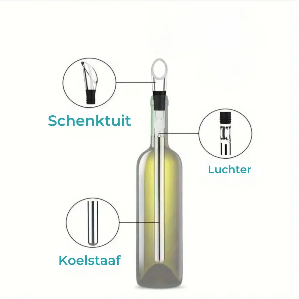 3-in-1 ontwerp – Kylstav, schenktuit en wijnbeluchter in één stijlvolle oplossing.